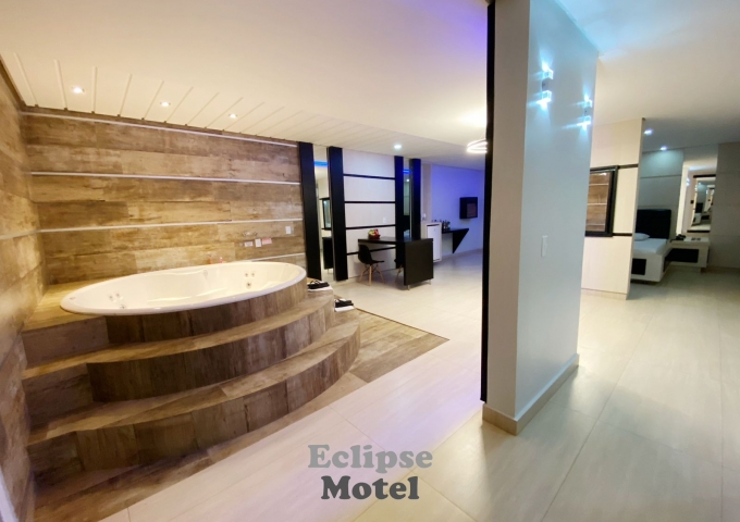 Nossa suíte Double foi cuidadosamente decorada para criar uma atmosfera intimista e sedutora. Com detalhes pensados para estimular os sentidos, você encontrará design sofisticado, iluminação adequada, uma TV 55¨ giratória, hidromassagem para 4 pessoas, sauna, garagem para dois carros e um quarto privativo dentro da suíte, perfeito para uma festa particular.